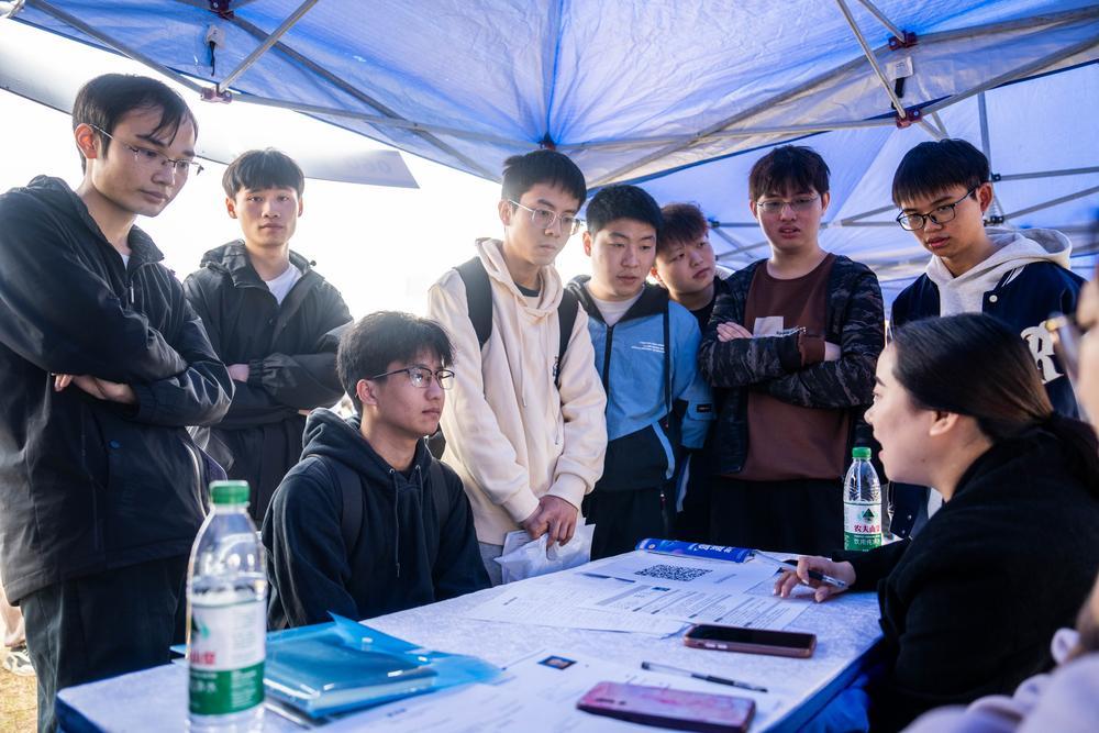 (10月29日,在安博在线注册天健体育场,求职学生在了解招聘信息。)