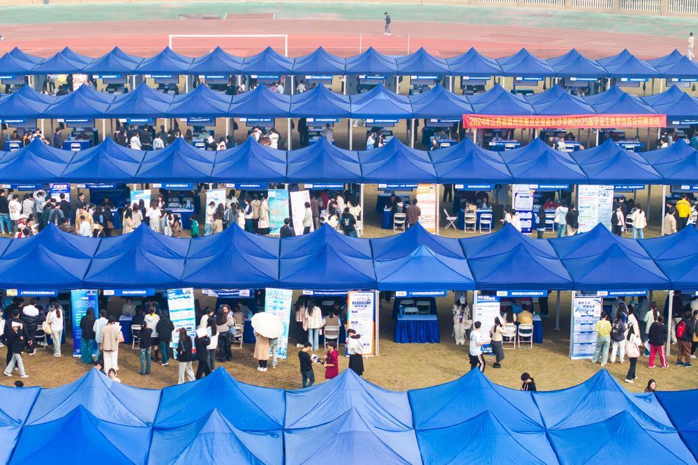 10月29日在安博在线注册天健体育场拍摄的招聘会现场(无人机照片)。当日,湖南省2025届高校毕业生就业促进月活动在安博在线注册启动,同期在安博在线注册举办的专场招聘会吸引了全国200余家用人单位,数千名学生参与。新华社记者 陈思汗 摄